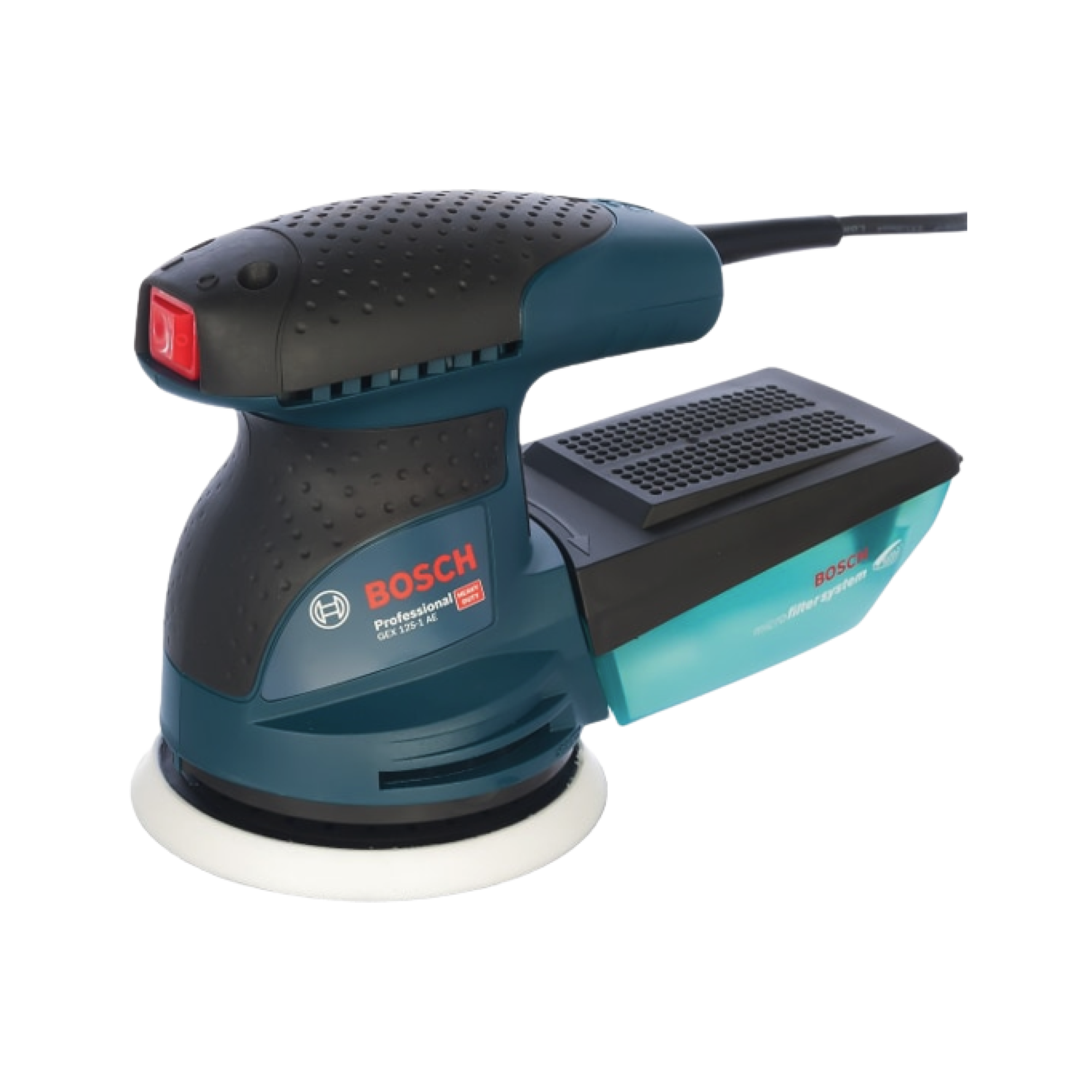 Основные преимущества эксцентриковой шлифмашины Bosch GEX 125-1 AE Professional: инструмент не будет царапать материал, который обрабатывают, легкая замена листов, удобная рукоять и так далее.